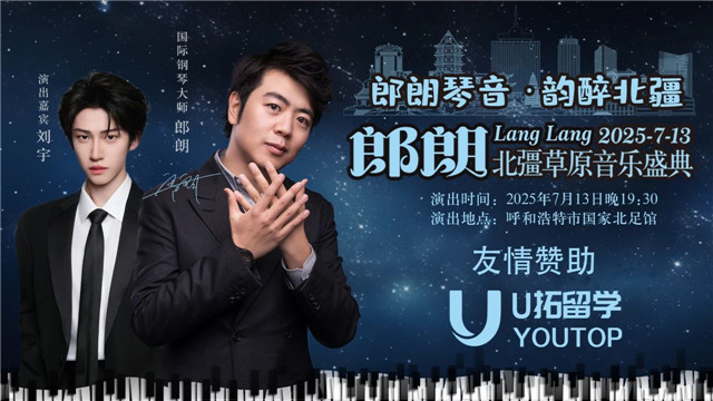 音樂會(huì)上,國際鋼琴大師郎朗與演出嘉賓劉宇,即將給呼和浩特熱愛音樂的草原人民,傾情奉獻(xiàn)。屆時(shí),U拓英語將要見證一場前所未有的音樂盛會(huì)。