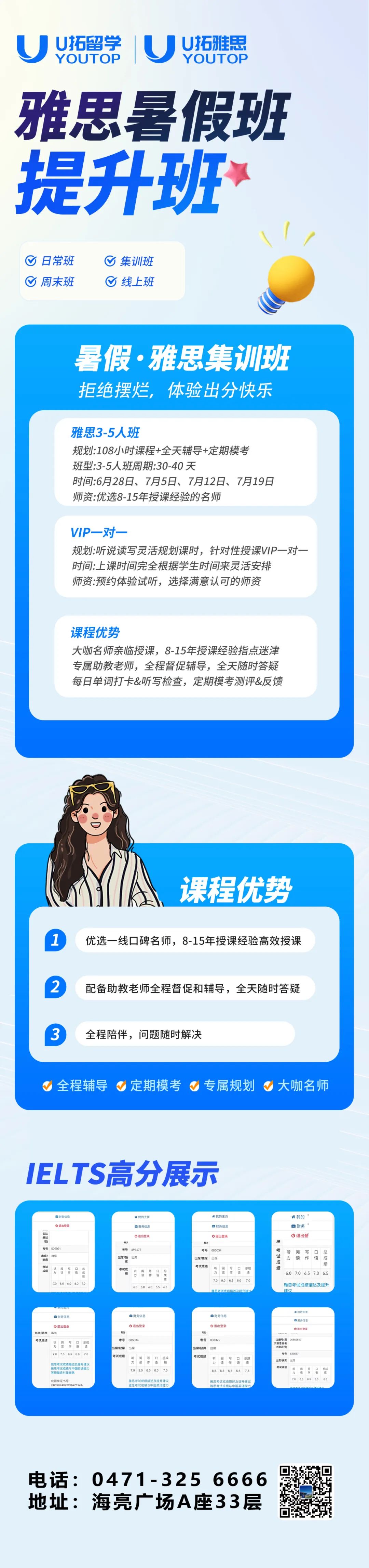 U拓是一個專注“陪伴式”語言定制教育的語言品牌,隸屬于內蒙古新宇露囿拓教育咨詢服務有限公司。品牌懷著“教授之外,超于伙伴”的教學理想,本著“費用經濟,課輔到位 ”教學理念,致力于為學生提供教學以及陪伴式的語培咨詢服務。
